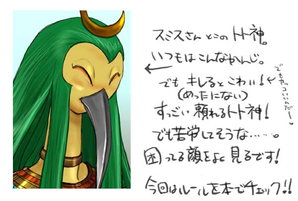 エジプト神運動会企画で、あやめゆうきさんがトト神集合イラストを描いて下さいました!