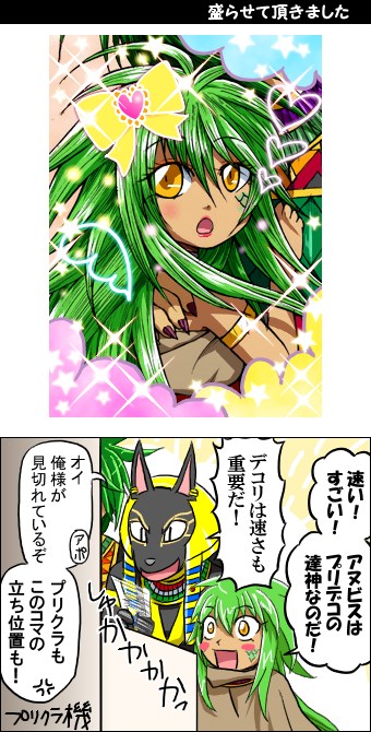 まさかのプリクラだったというオチ……! 笑ってしまったのとアヌビスさんが凄すぎて! 達神!! うみうしさんのアヌビスさん、カッコイイんですが趣味が乙女なので、こういうことは大得意なんですよね。