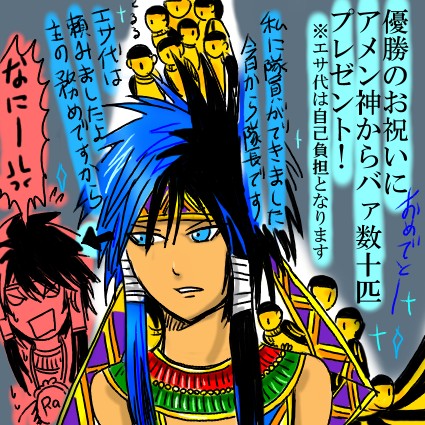 エジ神合同本も、全員分のプロフページもさっきフィニッシュしたので、私がやることはひとまず終わりです。去年の12月くらいからやってたPixivの企画も、昨日ついに終わりになりました。ちょっと寂しいなーと思いつつ、今までほぼそっちばかり描いていたように思うので、またゆっくりエジ神とかオリジナルの方も描いていきたいなと思います。